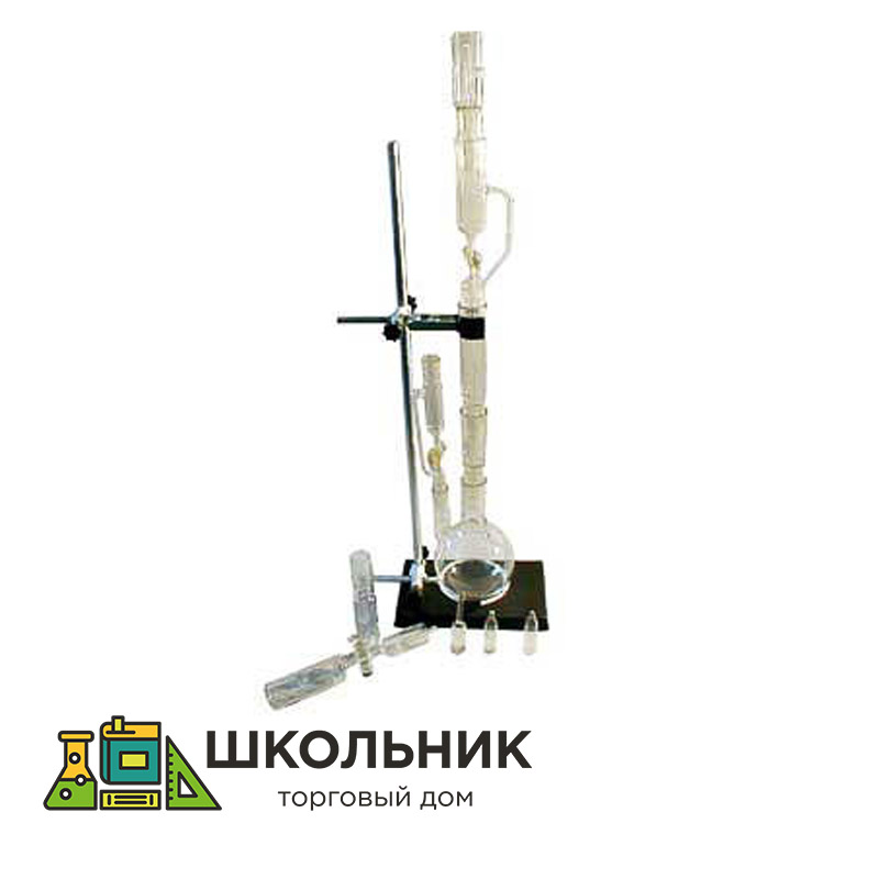 Комплектность: колба - 1 шт., сосуд для жидких веществ - 2 шт., воронка делительная - 1 шт., воронка капельная - 1 шт., колпачок - 2 шт., колонка реакционная - 1 шт., сосуд для твердых веществ - 1 шт.