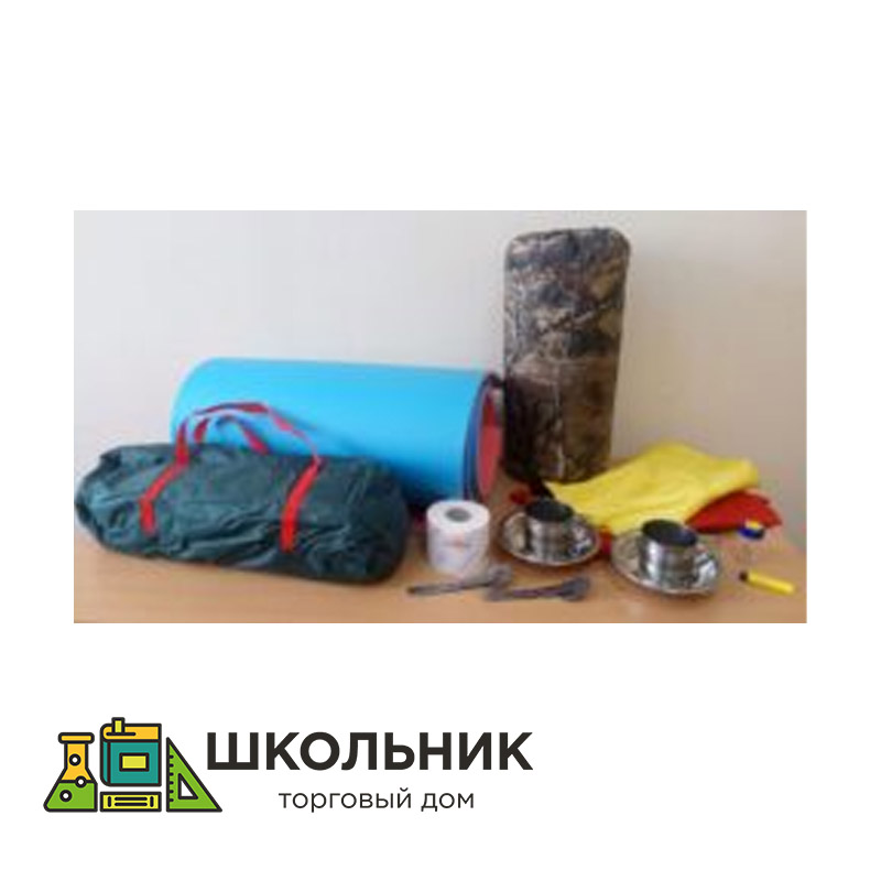 Комплект бивуачного снаряжения включает в себя: 1) Палатка двухместная. Материал палатки (внешний) — полиэстер c водонепроницаемой пропиткой, внутренний — полиэстер, материал пола — армированный полиэтилен. Каркас палатки — стеклопластик. Палатка имеет тамбур перед входом, москитную сетку и вентиляционное окно. Количество 1 шт. 2) Спальный мешок с подголовником. Технология «Теплый шов». Тесьма по всей длине молнии исключает попадание ткани в бегунок. Пулер для удобства застегивания. Наружный материал Таффета 190Т 100% полиэстер, внутренний Бязь 100 % х/б. Температурный режим спального мешка: -10 Сº. Плотность наполнителя 300 гр/м2. Длина 250 (+/- 5) см, ширина 90 (+/- 5) см. Количество 1 шт. 3) Гермомешки под обувь и одежду объем 60 л, водостойкость 5000 мвс. Количество 2 шт. 4) Коврик туристический двухслойный изготовлен из пенополиэтилена, размер длина 180 см, ширина 60 см, толщина 8 мм. Количество 2 шт. 5) Кружка из нержавеющей стали объем 450 мл. Количество 2 шт. 6) Миска из нержавеющей стали объем не менее 500 мл. Количество 2 шт. 7) Походный столовый набор (вилка, ложка, нож-открывалка, все приборы складываются друг в друга). Количество 2 шт. 8) Зажигалка. Количество 1 шт. 9) Зубочистка. Количество 1 упаковка. 10) Туалетная бумага 54 м. Количество 1 рулон.